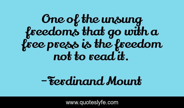 This page presents the quote "One of the unsung freedoms that go with a free press is the freedom not to read it.". Author of this quote is Ferdinand Mount. This quote is about press, free press, free,.