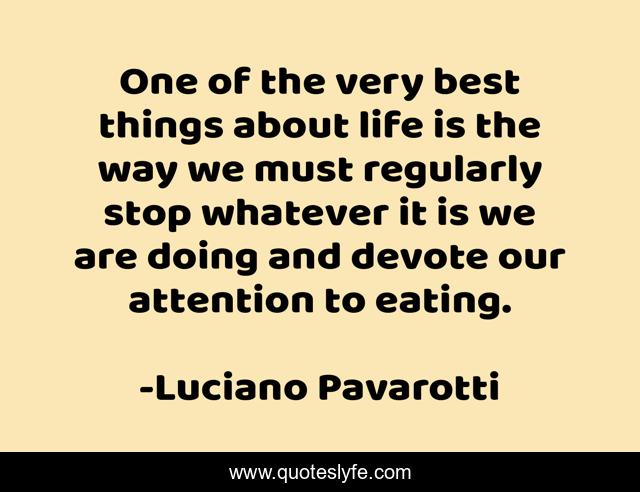 This page presents the quote "One of the very best things about life is the way we must regularly stop whatever it is we are doing and devote our attention to eating.". Author of this quote is Luciano Pavarotti. .