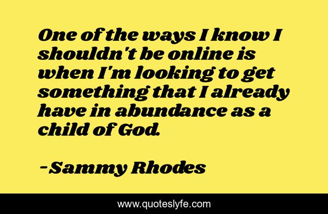 This page presents the quote "One of the ways I know I shouldn't be online is when I'm looking to get something that I already have in abundance as a child of God.". Author of this quote is Sammy Rhodes. This quote is about social-media, introversion, christianity,.