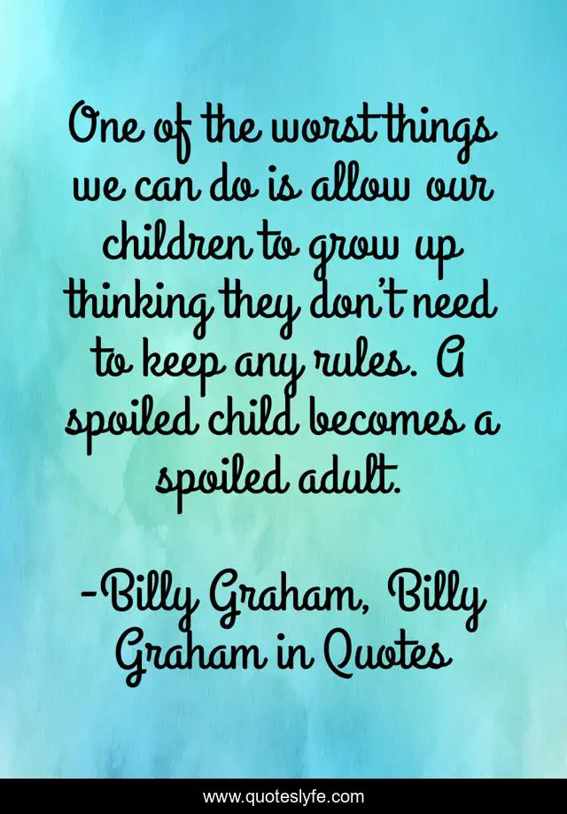 This page presents the quote "One of the worst things we can do is allow our children to grow up thinking they don’t need to keep any rules. A spoiled child becomes a spoiled adult.". Author of this quote is Billy Graham, Billy Graham in Quotes. This quote is about children, billy-graham,.