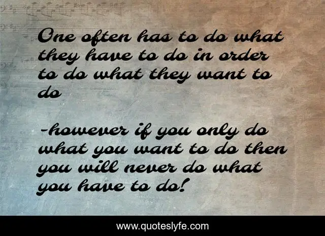 "however if you only do what you want to do then you will never do what you have to do! Quotes." Quoteslyfe.com, 2025. Sat. 06 Dec. 2025. <https://www.quoteslyfe.com/quote/One-often-has-to-do-what-they-19457>.