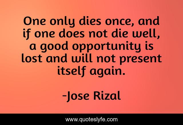 This page presents the quote "One only dies once, and if one does not die well, a good opportunity is lost and will not present itself again.". Author of this quote is Jose Rizal. This quote is about opportunity, lost, present,.