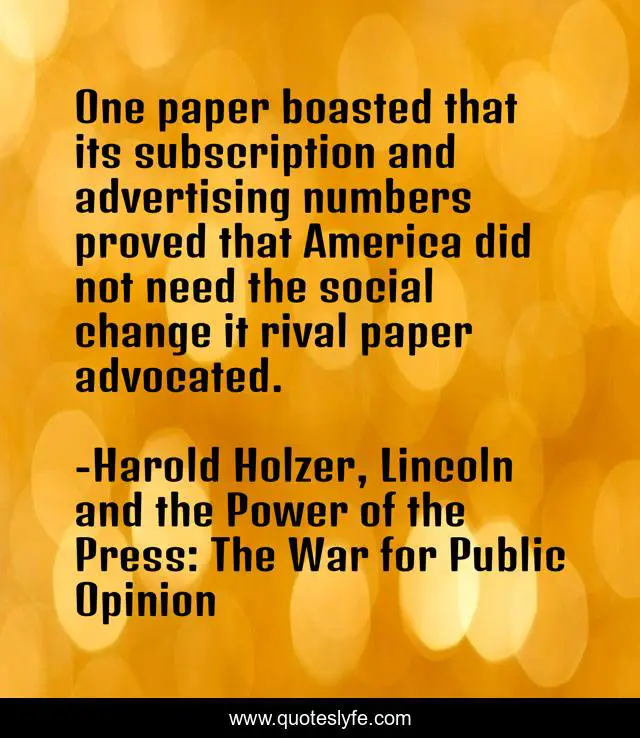 "Harold Holzer, Lincoln and the Power of the Press: The War for Public Opinion Quotes." Quoteslyfe.com, 2025. Fri. 05 Dec. 2025. <https://www.quoteslyfe.com/quote/One-paper-boasted-that-its-subscription-and-199416>.
