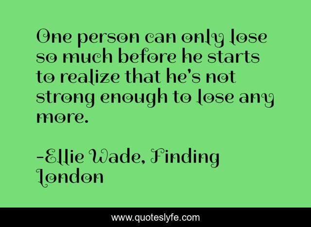 This page presents the quote "One person can only lose so much before he starts to realize that he's not strong enough to lose any more.". Author of this quote is Ellie Wade, Finding London. This quote is about faith, life, strength, family, loss,.