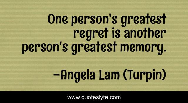 This page presents the quote "One person's greatest regret is another person's greatest memory.". Author of this quote is Angela Lam (Turpin). .