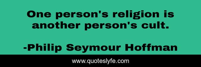 This page presents the quote "One person's religion is another person's cult.". Author of this quote is Philip Seymour Hoffman. This quote is about cult, person, another,.