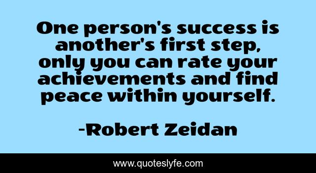 One person's success is another's first step, only you can rate your achievements and find peace within yourself.