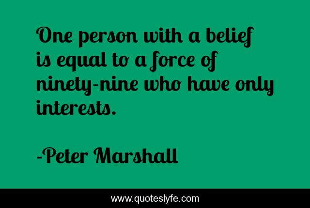 This page presents the quote "One person with a belief is equal to a force of ninety-nine who have only interests.". Author of this quote is Peter Marshall. This quote is about interests, belief,.