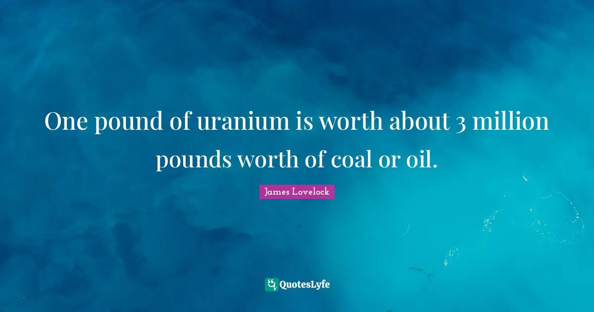 "James Lovelock Quotes." Quoteslyfe.com, 2026. Thu. 01 Jan. 2026. <https://www.quoteslyfe.com/quote/One-pound-of-uranium-is-worth-about-685532>.