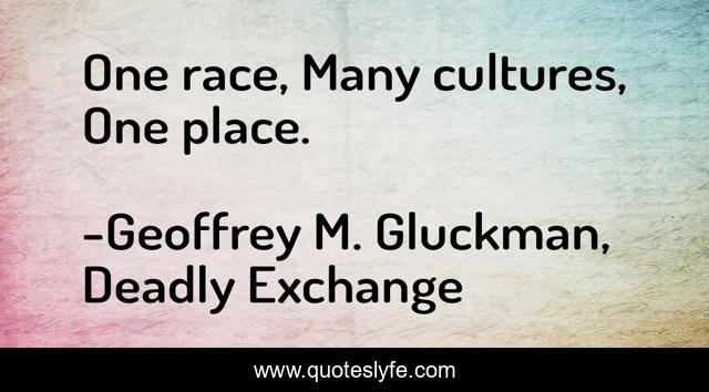 "Geoffrey M. Gluckman, Deadly Exchange Quotes." Quoteslyfe.com, 2025. Sat. 06 Dec. 2025. <https://www.quoteslyfe.com/quote/One-race-Many-cultures-One-place-254998>.