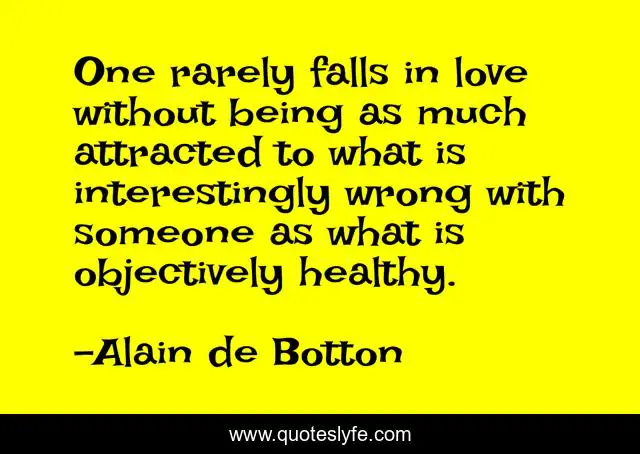 This page presents the quote "One rarely falls in love without being as much attracted to what is interestingly wrong with someone as what is objectively healthy.". Author of this quote is Alain de Botton. This quote is about right, love, attraction, wrong, health, pathology, affection,.