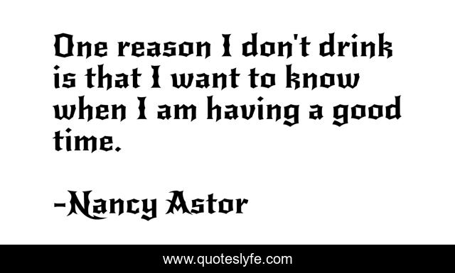 "Nancy Astor Quotes." Quoteslyfe.com, 2025. Fri. 05 Dec. 2025. <https://www.quoteslyfe.com/quote/One-reason-I-don-t-drink-is-248825>.