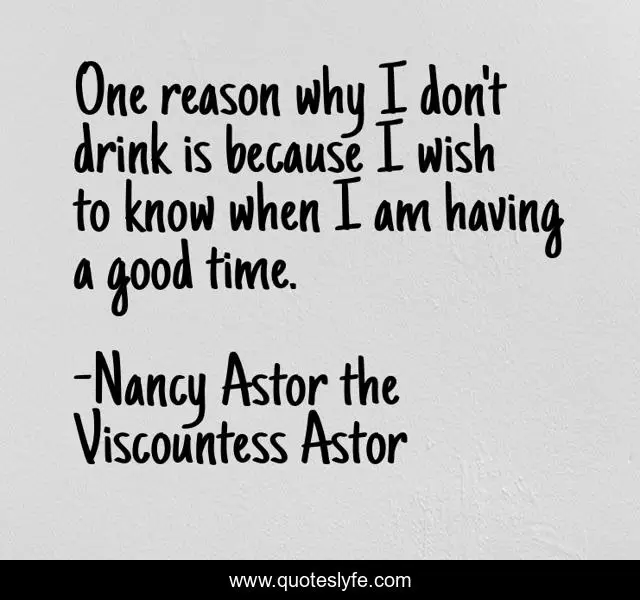 This page presents the quote "One reason why I don't drink is because I wish to know when I am having a good time.". Author of this quote is Nancy Astor the Viscountess Astor. This quote is about drinking, good-time,.