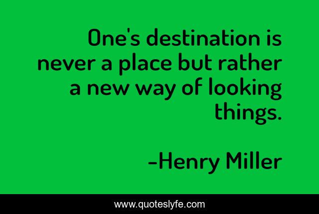 "Henry Miller Quotes." Quoteslyfe.com, 2025. Fri. 05 Dec. 2025. <https://www.quoteslyfe.com/quote/One-s-destination-is-never-a-place-174615>.
