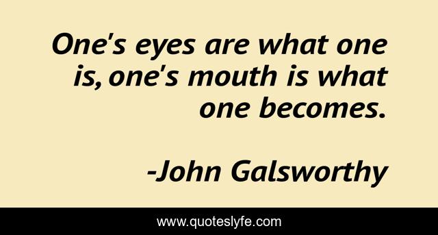 This page presents the quote "One's eyes are what one is, one's mouth is what one becomes.". Author of this quote is John Galsworthy. This quote is about becomes, eyes, mouth,.