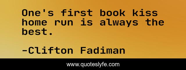 This page presents the quote "One's first book kiss home run is always the best.". Author of this quote is Clifton Fadiman. This quote is about enjoyment, pleasure,.