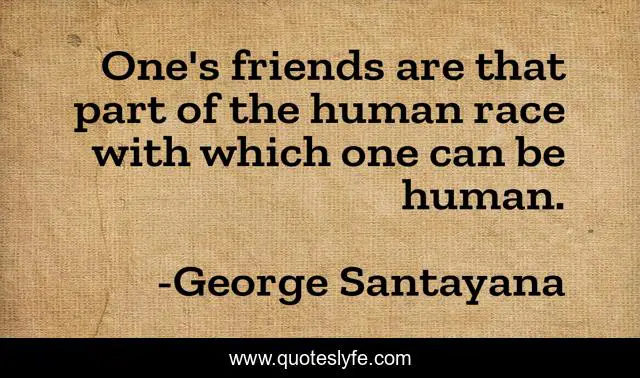This page presents the quote "One's friends are that part of the human race with which one can be human.". Author of this quote is George Santayana. .
