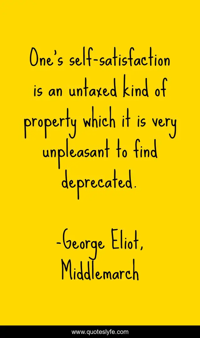 This page presents the quote "One’s self-satisfaction is an untaxed kind of property which it is very unpleasant to find deprecated.". Author of this quote is George Eliot, Middlemarch. .