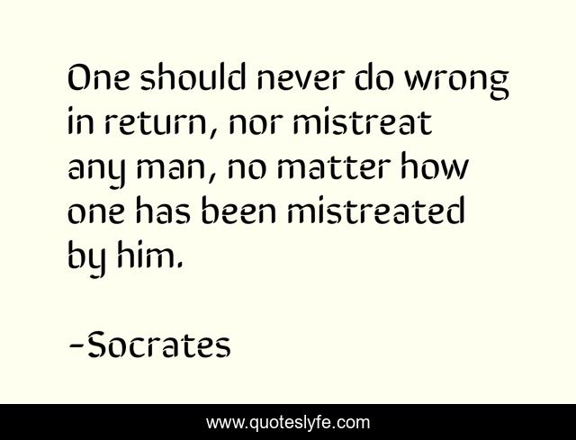 This page presents the quote "One should never do wrong in return, nor mistreat any man, no matter how one has been mistreated by him.". Author of this quote is Socrates. This quote is about forgiveness, nobility,.