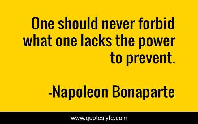 This page presents the quote "One should never forbid what one lacks the power to prevent.". Author of this quote is Napoleon Bonaparte. .