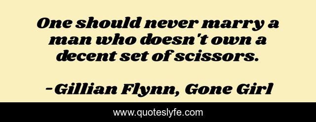 "Gillian Flynn, Gone Girl Quotes." Quoteslyfe.com, 2025. Mon. 08 Dec. 2025. <https://www.quoteslyfe.com/quote/One-should-never-marry-a-man-who-149906>.