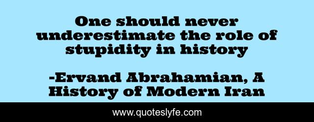 This page presents the quote "One should never underestimate the role of stupidity in history". Author of this quote is Ervand Abrahamian, A History of Modern Iran. .