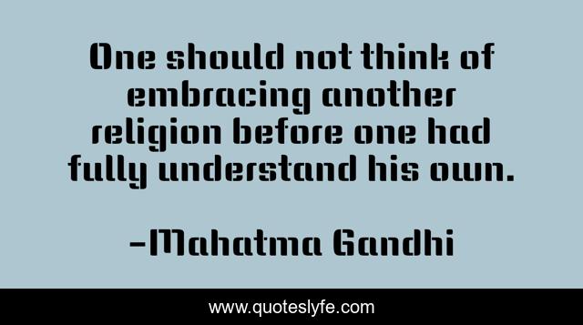 This page presents the quote "One should not think of embracing another religion before one had fully understand his own.". Author of this quote is Mahatma Gandhi. This quote is about religion, gandhi,.
