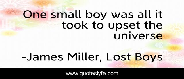 This page presents the quote "One small boy was all it took to upset the universe". Author of this quote is James Miller, Lost Boys. This quote is about boy, love, war, affection, universe,.