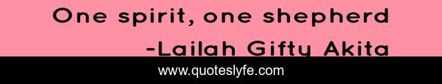 "Lailah Gifty Akita Quotes." Quoteslyfe.com, 2025. Sun. 07 Dec. 2025. <https://www.quoteslyfe.com/quote/One-spirit-one-shepherd-13346>.