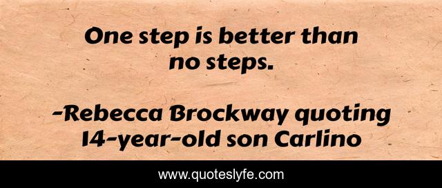 "Rebecca Brockway quoting 14-year-old son Carlino Quotes." Quoteslyfe.com, 2025. Fri. 05 Dec. 2025. <https://www.quoteslyfe.com/quote/One-step-is-better-than-no-steps-210036>.