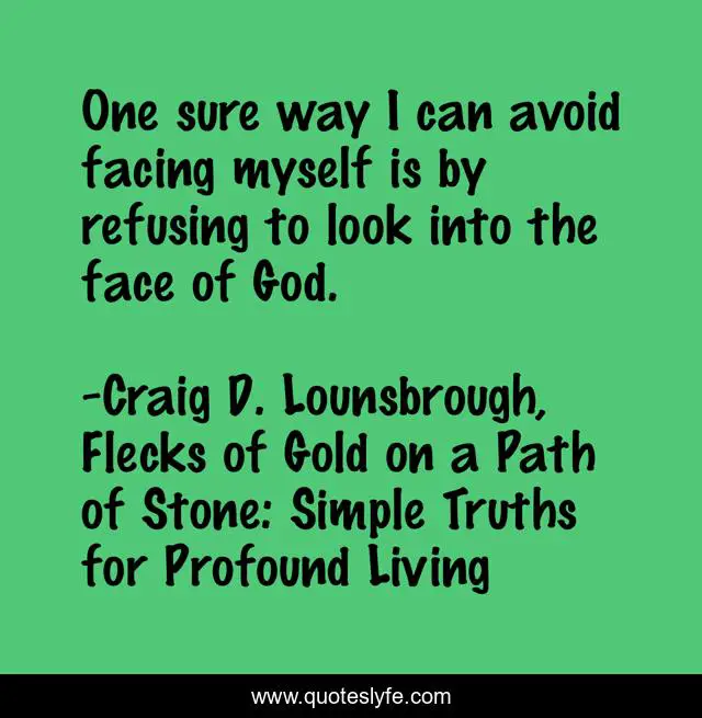 "Craig D. Lounsbrough, Flecks of Gold on a Path of Stone: Simple Truths for Profound Living Quotes." Quoteslyfe.com, 2025. Fri. 05 Dec. 2025. <https://www.quoteslyfe.com/quote/One-sure-way-I-can-avoid-facing-252572>.