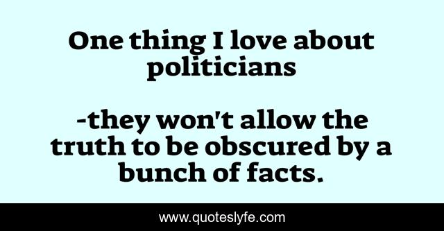 "they won't allow the truth to be obscured by a bunch of facts. Quotes." Quoteslyfe.com, 2025. Sat. 06 Dec. 2025. <https://www.quoteslyfe.com/quote/One-thing-I-love-about-politicians-10339>.