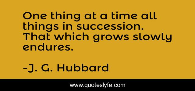 "J. G. Hubbard Quotes." Quoteslyfe.com, 2025. Mon. 08 Dec. 2025. <https://www.quoteslyfe.com/quote/One-thing-at-a-time-all-things-271531>.