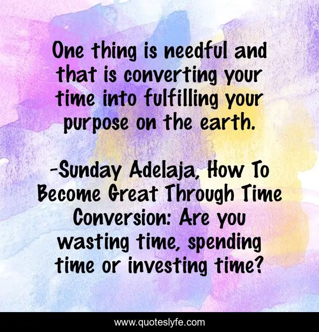 "Sunday Adelaja, How To Become Great Through Time Conversion: Are you wasting time, spending time or investing time? Quotes." Quoteslyfe.com, 2025. Fri. 05 Dec. 2025. <https://www.quoteslyfe.com/quote/One-thing-is-needful-and-that-is-39181>.