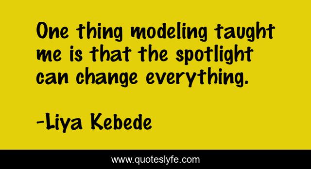 This page presents the quote "One thing modeling taught me is that the spotlight can change everything.". Author of this quote is Liya Kebede. This quote is about me, modeling, everything,.