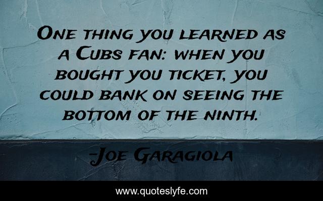 This page presents the quote "One thing you learned as a Cubs fan: when you bought you ticket, you could bank on seeing the bottom of the ninth.". Author of this quote is Joe Garagiola. This quote is about seeing, bank,.