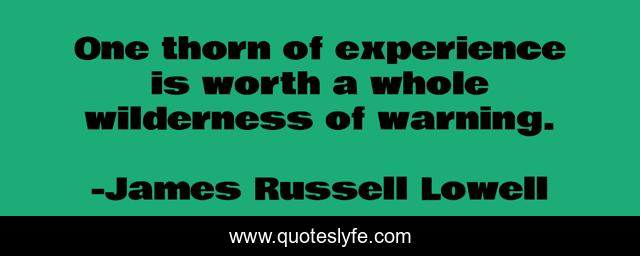 This page presents the quote "One thorn of experience is worth a whole wilderness of warning.". Author of this quote is James Russell Lowell. .