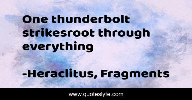 "Heraclitus, Fragments Quotes." Quoteslyfe.com, 2025. Sat. 06 Dec. 2025. <https://www.quoteslyfe.com/quote/One-thunderbolt-strikesroot-through-everything-87985>.