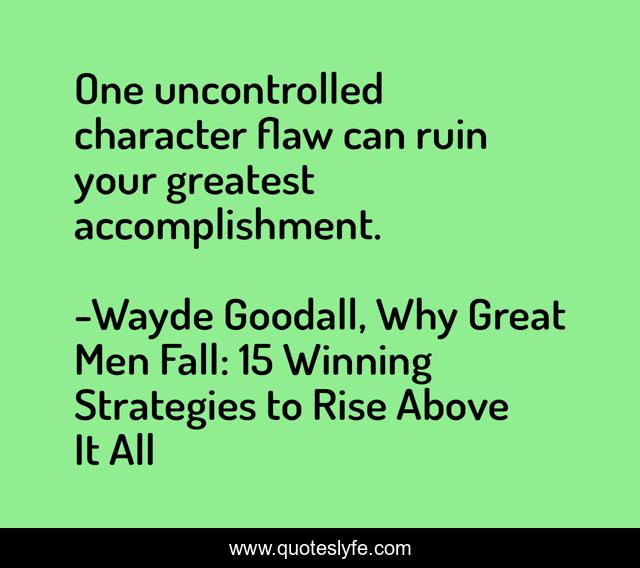 "Wayde Goodall, Why Great Men Fall: 15 Winning Strategies to Rise Above It All Quotes." Quoteslyfe.com, 2025. Fri. 05 Dec. 2025. <https://www.quoteslyfe.com/quote/One-uncontrolled-character-flaw-can-ruin-your-173859>.