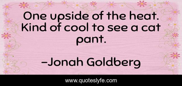 This page presents the quote "One upside of the heat. Kind of cool to see a cat pant.". Author of this quote is Jonah Goldberg. This quote is about heat, cats, 2011, 2011-north-american-heat-wave, twitter,.