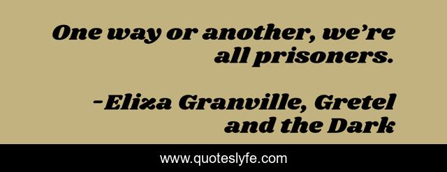 This page presents the quote "One way or another, we’re all prisoners.". Author of this quote is Eliza Granville, Gretel and the Dark. This quote is about mystery, life, prisoners, sadness,.