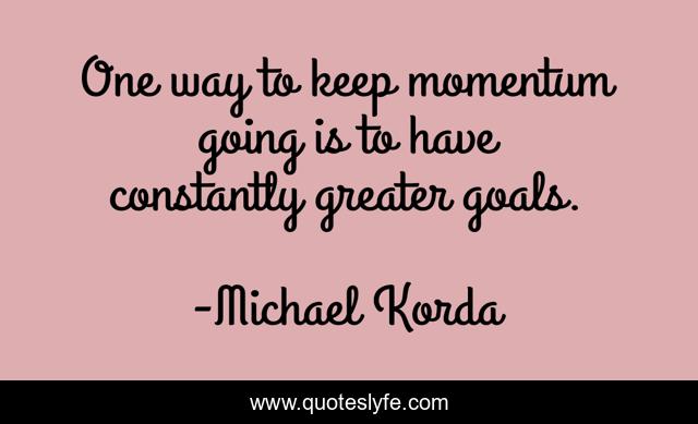 This page presents the quote "One way to keep momentum going is to have constantly greater goals.". Author of this quote is Michael Korda. This quote is about momentum, goals, way,.
