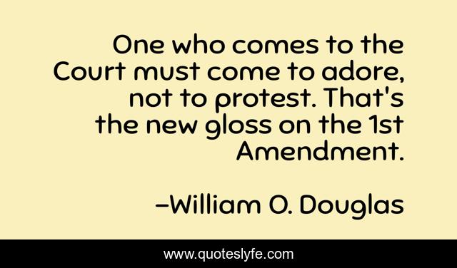 This page presents the quote "One who comes to the Court must come to adore, not to protest. That's the new gloss on the 1st Amendment.". Author of this quote is William O. Douglas. This quote is about amendment, new, protest,.