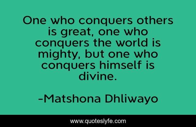 "Matshona Dhliwayo Quotes." Quoteslyfe.com, 2025. Fri. 05 Dec. 2025. <https://www.quoteslyfe.com/quote/One-who-conquers-others-is-great-one-225320>.