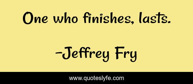 This page presents the quote "One who finishes, lasts.". Author of this quote is Jeffrey Fry. This quote is about finishes, lasts, persistence,.