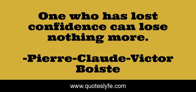 "Pierre-Claude-Victor Boiste Quotes." Quoteslyfe.com, 2025. Sat. 06 Dec. 2025. <https://www.quoteslyfe.com/quote/One-who-has-lost-confidence-can-lose-144487>.