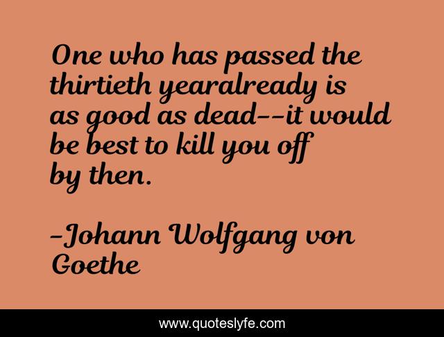 This page presents the quote "One who has passed the thirtieth yearalready is as good as dead--it would be best to kill you off by then.". Author of this quote is Johann Wolfgang von Goethe. This quote is about faust, growing-old, arrogance,.