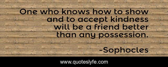 This page presents the quote "One who knows how to show and to accept kindness will be a friend better than any possession.". Author of this quote is Sophocles. .
