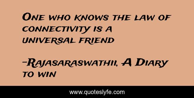 This page presents the quote "One who knows the law of connectivity is a universal friend". Author of this quote is Rajasaraswathii, A Diary to win. This quote is about peace, friendship, harmony, relationship,.