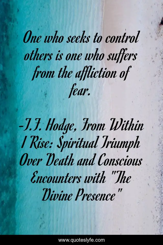 This page presents the quote "One who seeks to control others is one who suffers from the affliction of fear.". Author of this quote is T.F. Hodge, From Within I Rise: Spiritual Triumph Over Death and Conscious Encounters with "The Divine Presence". This quote is about quotes-to-live-by, t-f-hodge,.